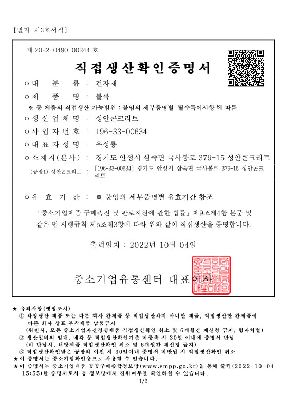 성안콘크리트 ㅣ 사업자등록번호 : 196-33-00634 ㅣ 대표 : 유성룡 l TEL : 031-671-9987 ㅣ FAX : 031-671-9997 l Email : sungancon@daum.net